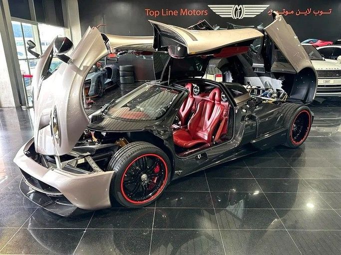 Pagani Huayra 1 of 100 Brand new tires Hypercar 10-year PPF warranty Full service history GCC specifications AMG engine Full Carbotanium construction Special color Features Power steering Air conditioning Climate control Cooled seats Power mirrors Power seats Power windows