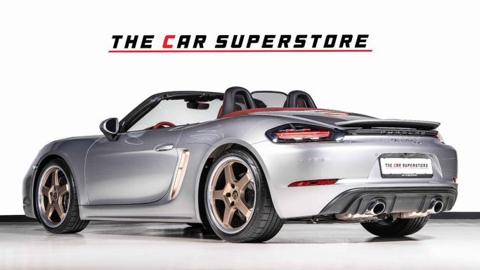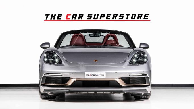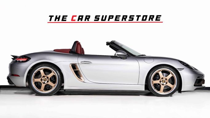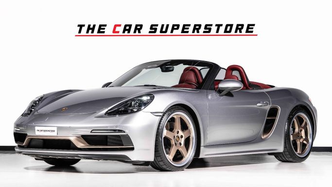 Get ready to experience pure driving exhilaration with the 2022 Porsche Boxster 25 Years Anniversary Edition. This meticulously crafted roadster has only 2,389 km on the odometer. Celebrate the legacy of the Boxster with this exclusive model, and be prepared to be swept away by the thrill of the drive. – WARRANTY UNTIL 07/09/2026 Key Features: – Original Porsche Silver Paint Finish – Boxster 25 Roof Embossing – Neodyme Gold Wheels – Bordeaux Red Interior – 4.0-Litre Naturally Aspirated Flat-6 Engine – 7-Speed PDK – Porsche Dynamic Chassis Control – Cruise Control – Multi-F