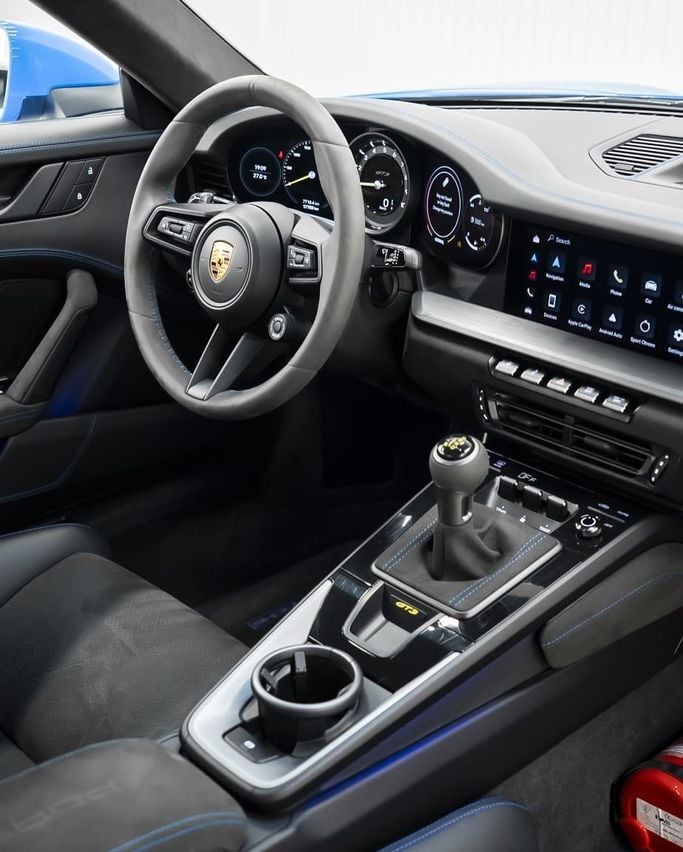 Call 📞 00971528397845 Exterior paint colour : D7 Shark Blue Interior trim: Interior with extensive leather / Race-Tex Options list : Porsche Ceramic Composite Brake (PCCB) Wheels painted in Satin Black with rim borders painted in Shark Blue Steering column casing in leather Front axle lift system Belt outlet trims in Race-Tex Dashboard and Door Trim Package in Leather Sun visors in Race-Tex Club Sport Package with additional road legal1kg fire extinguisher Storage compartment lid in Race-Tex with ‘PORSCHE’ logo LED Main Headlights in black with Matrix Beam including Por