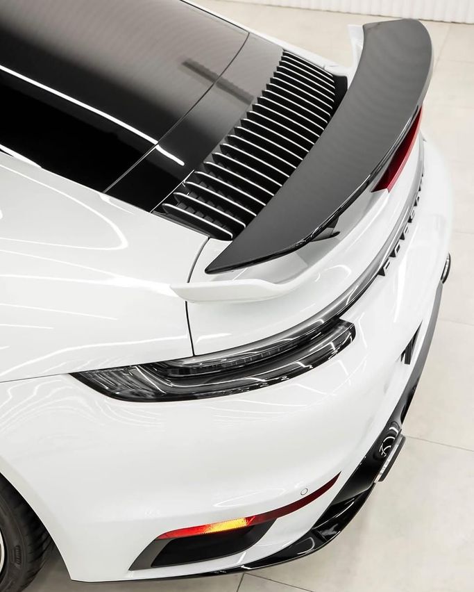 FOR SALE 2021 911 Porsche Turbo S 992 top of the line options list with Adaptive cruise control / Night vision / Suspension lifter / Burmester Audio Under Porsche warranty extended until August 2027 and optional to extend full service history - service was just carried out in August 2025 Perfect condition - No accidents - original paint 17,000 km Price : AED 759,000 Call 📞 00971528397845 Exterior paint colour: 2Y Carrara White Metallic Interior trim: Black leather seats with Sport-Tex square Options list : Deletion of Model Designation Sports exhaust system (tailp