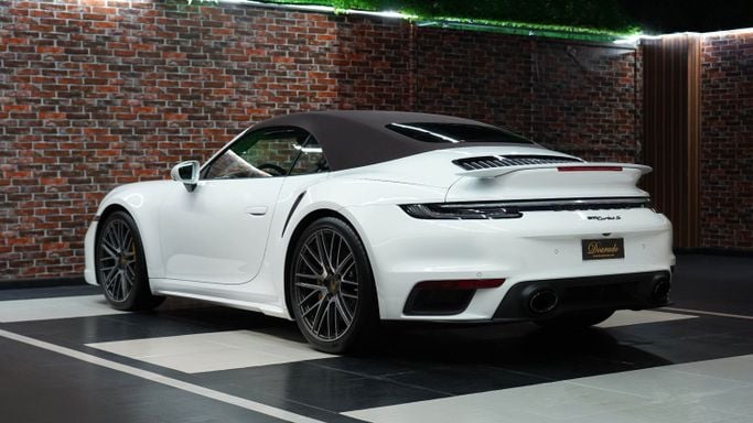 Porsche 911 Turbo S Cabriolet Brand New 2023 3.7L / 6 Cylinder 8 Speed Automatic Transmission 640 Horsepower 0 to 100 KM/H in 2.7 s Top Speed 330 KM/H All Wheel Drive European Specs Exterior Colour WHITE Interior Colour TRUFFLE BROWN -------- Additional Features ---------- - Sport design package 911 turbo (Porsche exclusive manufacture) - Air intake in the rear side panel painted in black colour - Door projectors lettering - Black belts - Lettering painted in black - 8-porsche dual clutch transmission PDK - PASM sport suspension - Sports exhaust system with tailpipe cove