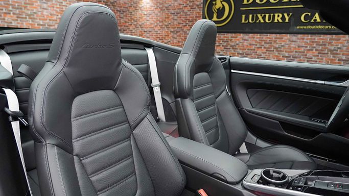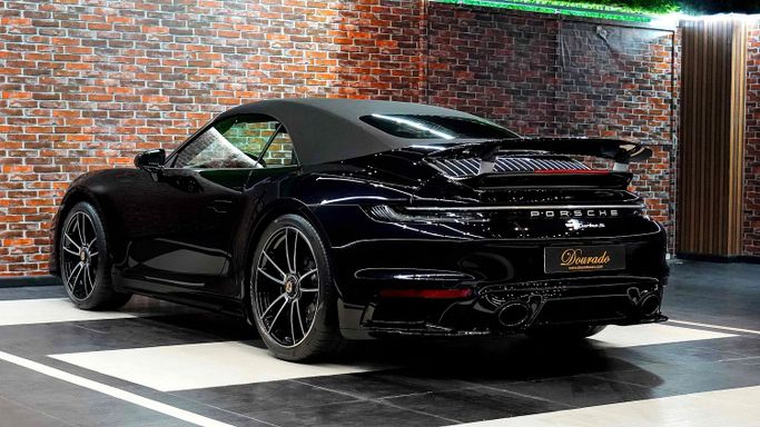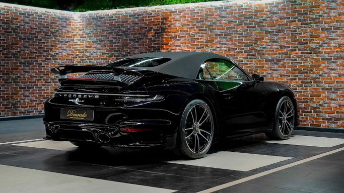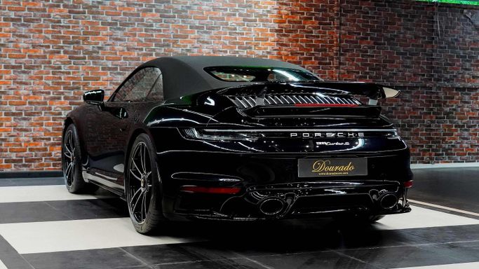 Porsche 911 Turbo S Cabriolet Brand New 2023 3.7L / 6 Cylinder 8 Speed Automatic Transmission 640 Horsepower 0 to 100 KM/H in 2.7 s Top Speed 330 KM/H All Wheel Drive European Specs Exterior Colour BLACK Interior Colour BLACK -------- Additional Features ---------- - Sport Design Package Turbo 911 - Door projectors lettering - PASM Sport suspension - Smart Lift system - Sports GT Heated steering wheel - Burmester surround sound system - Air intakes in the rear side panel painted in black colour - Yellow belts - Lettering painted in black - 8-porsche dual clutch Transmissi
