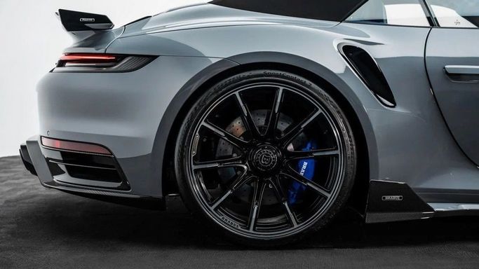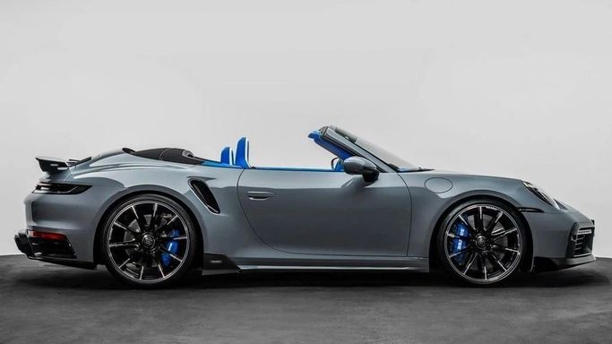 Selling Price: AED 1,755,000 Export Price: AED 1,595,000 Starting from: AED 26,541 per month Payable in 5 Years with 20% Down Payment Bank terms & conditions may apply 2024 Porsche 911 Turbo S Cabriolet BRABUS 720 Mileage: 97 Km Euro Specs Engine Size: 3.7L 6-CYL Horsepower: 720 HP Exterior Color: Arctic Grey | Royal Blue Interior Color: Royal Blue | White Porsche 911 Turbo S Cabriolet BRABUS 720 Color: Arctic Grey with Royal Blue Stripe Interior: Customized Royal Blue & White Trim: Carbon Wheels: BRABUS Monoblock Z 21/22 "Platinum Edition" Options: Carbon Decorative Insert
