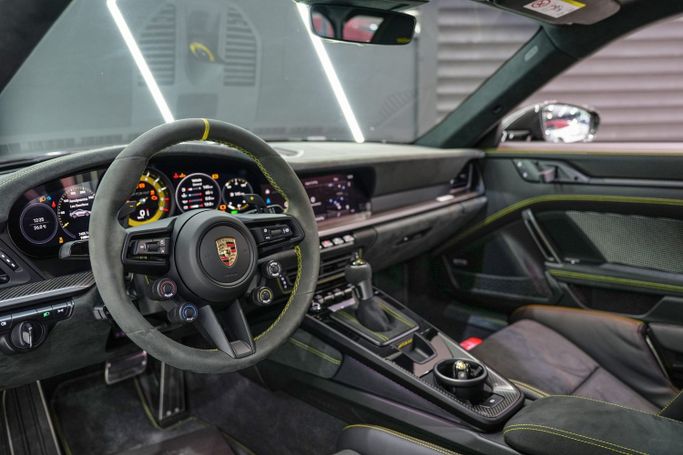 Porsche 911 GT3 RS Weissach GCC Specifications Dealer Warranty Until 12/11/2026 Full Body PPF Carbon Fiber Roof Carbon Fiber Bonnet Carbon Fiber Side Mirror Caps Carbon Fiber Rear Wing LED Headlights in Black with Dynamic Light System (PDLS) Carbon Fiber Bucket Seats Carbon Fiber Dash Inserts Carbon Fiber Door Inserts and Handles Carbon Fiber Center Console Carbon Fiber Roll Cage Carbon Fiber Illuminated Door Sill Guards Under Door Puddle Light Projectors Front Axle Lift System Sport Exhaust System Aerodynamics Package Bose Surround Sound System Apple CarPlay and Android A