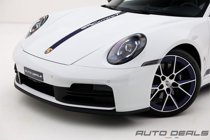 The 2025 Porsche 911 Carrera T on the 992 platform arrives in white as a focused, driver-first coupe. Powered by a 3.0-liter turbocharged flat-six delivering 385 horsepower to the rear wheels through an Automated Manual Transmission, it blends Porsche’s legendary balance with a lighter, more agile feel that rewards precise inputs and confident cornering. In GCC-spec, the car maintains modern refinement while retaining the Carrera T’s purist ethos, offering engaging mid-range response, tactile steering, and a chassis that communicates directly through the road. With only 34