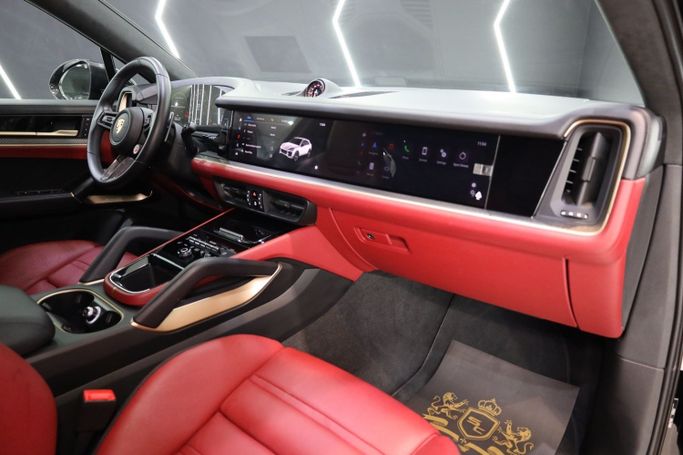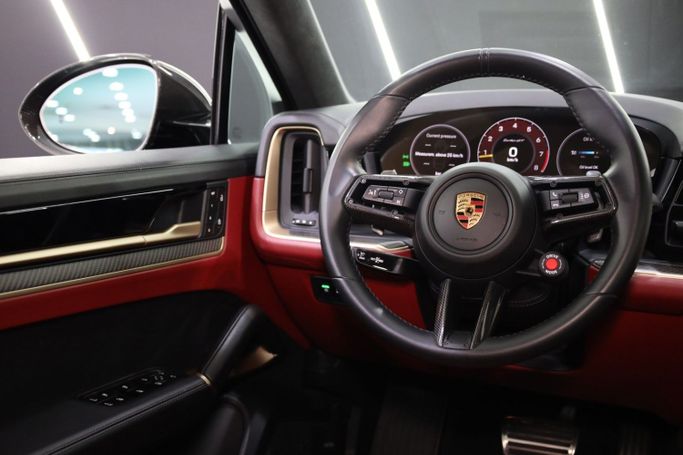 Porsche Cayenne Turbo GT GCC Specifications Dealer Warranty Until 29/02/2026 Features Include: - Carbon Fiber Roof - Carbon Fiber Mirror Caps - Carbon Fiber Roof Spoiler Side Fins - Carbon Fiber Rear Diffuser - Sport Exhaust System - Sport Chrono Package - Carbon Fiber Interior - Ventilated Seats - Bordeaux Red Seat Belts - Heated Leather Steering Wheel with Carbon Fiber - Ambient Lighting - Wireless Charging Tray - Rear Electric Sunshades - Bose Sound System - Apple CarPlay / Android Auto - Passenger Display - Head-Up Display - Cruise Control - Warning and Brake Assist
