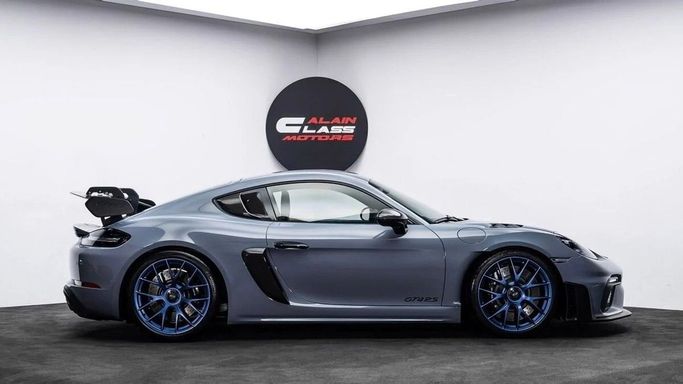 Selling Price: AED 730,000 Starting from: AED 11,071 per month Payable in 5 Years with 20% Down Payment Bank terms & conditions may apply 2022 Porsche Cayman GT4 RS Weissach Mileage: 1,253 Km GCC Specs Under Warranty till Sep 11, 2026 Engine Size: 4.0L 6-CYL Horsepower: 494 HP Exterior Color: Arctic Grey paint Interior Color: Black | Deep Sea Blue Exterior Options Arctic Grey paint Window triangle trims carbon (Porsche Exclusive Manufaktur) Door release levers painted in Black (high-gloss) (Porsche Exclusive Manufaktur) Brake calipers painted in Black (high-gloss) (Porsche
