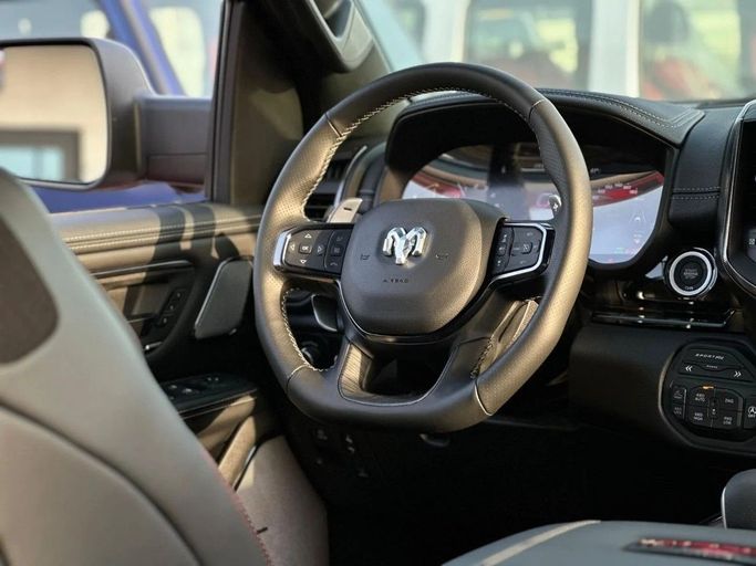 Ram 1500 Rebel X 2025 6 cylinder 3,0 Hurricane 6 For local and Export 0km - Brand New Specifications Vehicle : Four Wheel Drive Fuel Consumption combined 13-15 Litres / 100 KM Horsepower 420 Interior: Powered Leather seats with memory Heating/Cooling of front seats Heating of rear seats 3 Screen Harman Kardon Premium Audio System 18'' Wheels Digital central mirror Panoramic roof Adaptive Cruise control 360 Camera Wireless charging port