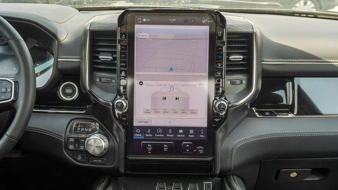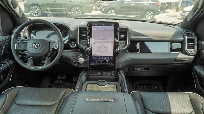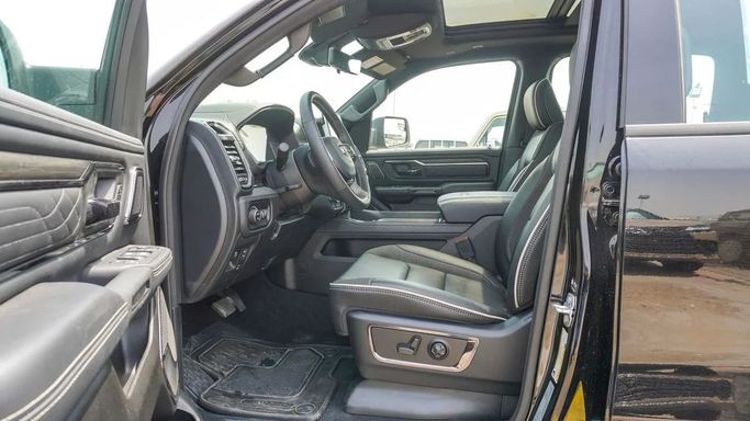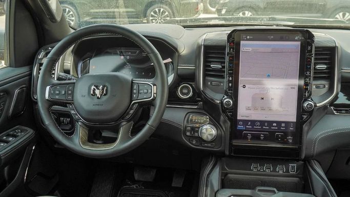 Introducing the 2025 RAM 1500 V Facelift, a new double-cab pickup designed for GCC markets. It combines all-wheel drive with an automatic transmission and a 3.0-liter petrol engine producing 420 horsepower, offering strong on-road performance and capable low-end torque for practical work and daily driving. The V Facelift updates the design with a sharper silhouette and a bold black finish that emphasizes a modern, confident presence. Inside, the cabin is built for comfort and function, with a spacious layout and controls arranged for easy use on busy days and longer trips a