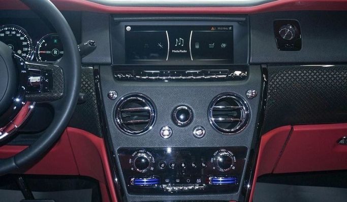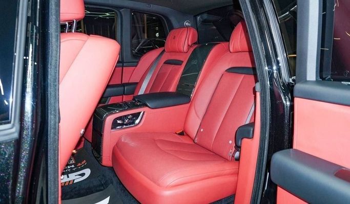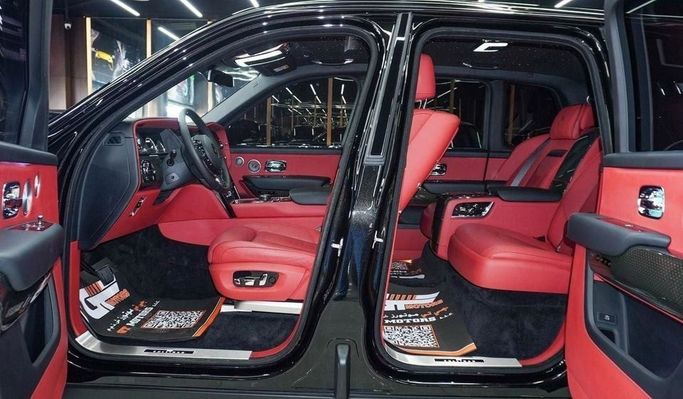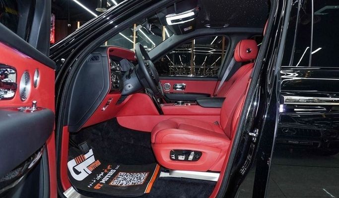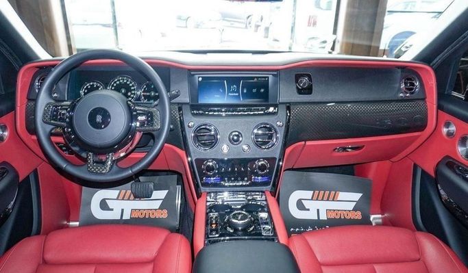Used Rolls-Royce Cullinan for sale in Dubai. Black 2020 model, available at Najem Motors FZE. This car has automatic transmission, a 8 cylinder engine, 22″ wheels and red interior. 12,000 km, European specs.