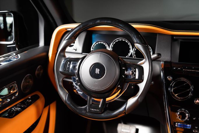 The 2020 Rolls Royce Cullinan Mansory is a bespoke luxury SUV featuring customizations by Mansory. Expect unique aerodynamic body kits, upgraded wheels, personalized interiors with premium materials, and potential performance enhancements. Mansory’s touch adds exclusivity and a distinctive flair to this already opulent vehicle. Exterior Color: Black Interior Color: Black and orange Odometer: 18,845 (kms) Specification: Other Cylinders: W12 Option: CULLINAN MANSORY No. of keys: 2 Key Features: – carbon fiber – Mansory Alloys – 360 Camera – Front and Rear Sensors – Navigatio