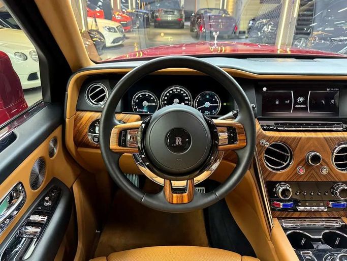 Rolls Royce Cullinan 2020 GCC under warranty Rolls-Royce Cullinan – 2020 free accident free paint Vehicle Details: • Model: Rolls-Royce Cullinan • Year: 2020 • Specification: GCC • Exterior Color: Red • Interior Color: Tan / Beige Leather • Mileage: 85,000 km • Warranty: Under Manufacturer / Extended Warranty • Service Contract: Active Key Features & Options: Interior & Comfort: • Full Rolls-Royce Bespoke Leather Interior • Rear Executive Lounge Seating • Rear Fold-Out Picnic Seats with Table (as shown in pictures) • Rear Theater / Entertainment Screens • E