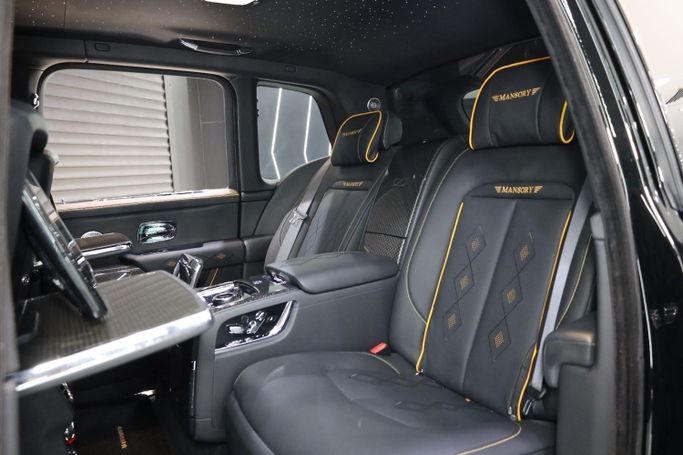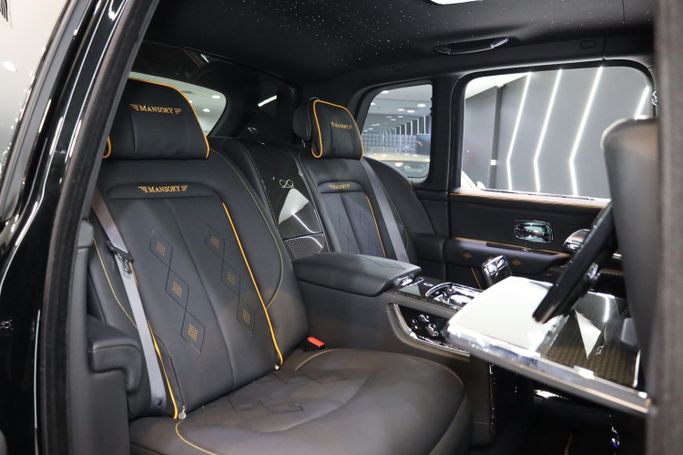 Rolls Royce Cullinan Black Badge Mansory Forged Carbon Body Kit, Forged Carbon Bonnet, Carbon Fiber Interior Trim, Bespoke Audio, Starlights, Ventilated/Massage Seats, Rear-Seat Entertainment Display, Rear-Seat Picnic Tables, Rear-Individual Seats, Fridge, Apple CarPlay, Blind Spot Assist, Night Vision, 360° Camera, 24 Inch Forged Mansory Wheels