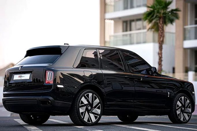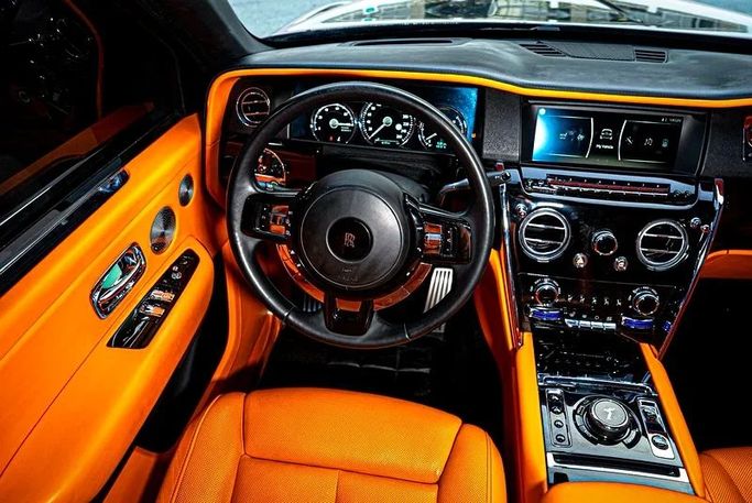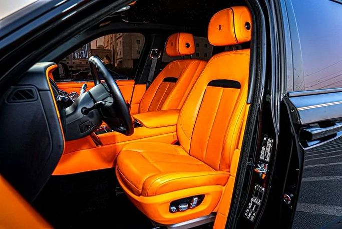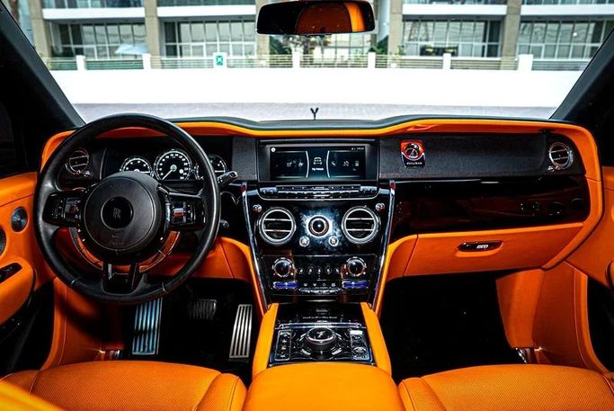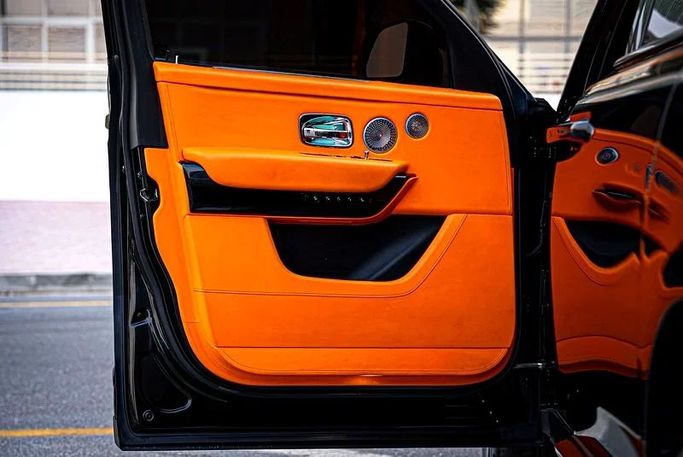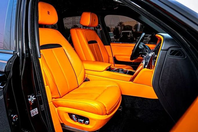 2022 Rolls Royce Cullinan Black Badge 49,000 km Black with Special Orange Interior Under AGMC Warranty Full Service Record Recently Serviced Starlight Headliner Located in Dubai Call us for more info: