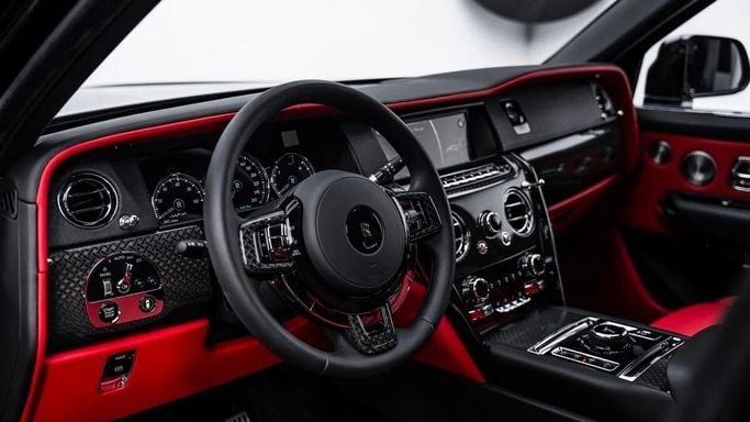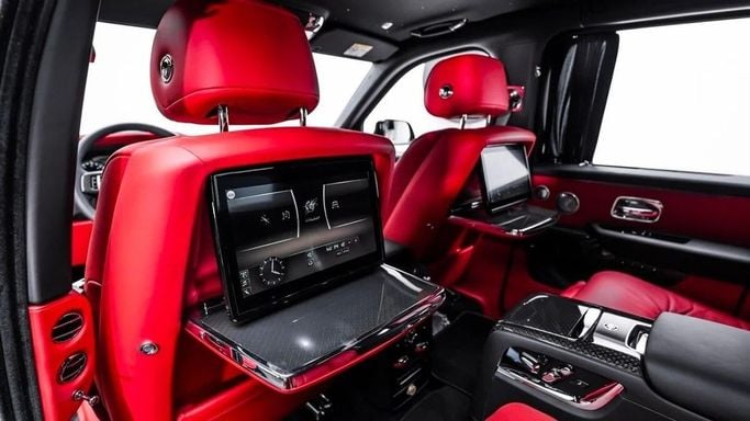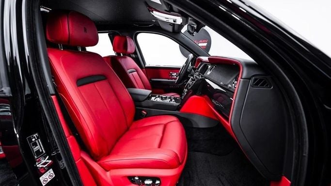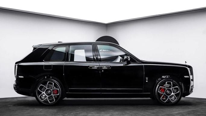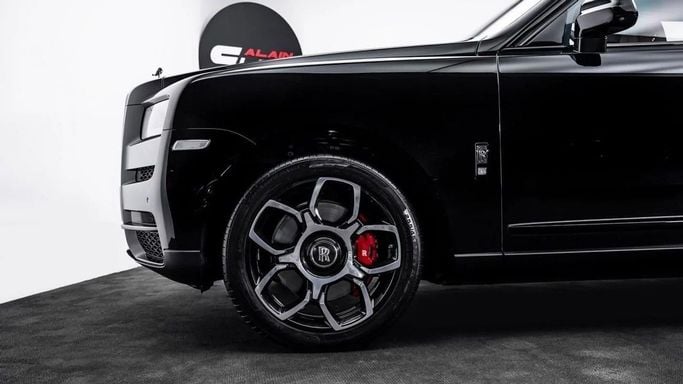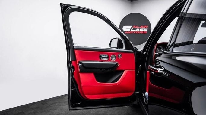 Selling Price: AED 1,595,000 2023 Rolls-Royce Cullinan Black Badge Mileage: 801 Km Under Dealer Warranty and Service Contract Engine Size: 6.8L V12 Horsepower: 591 HP Exterior Color: Black Diamond Interior Color: Phoenix Red