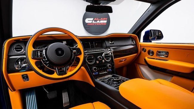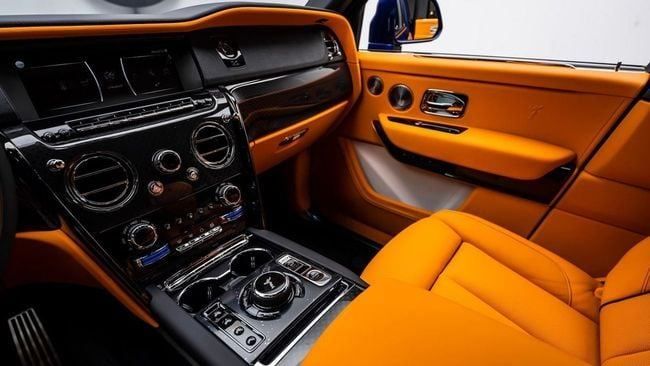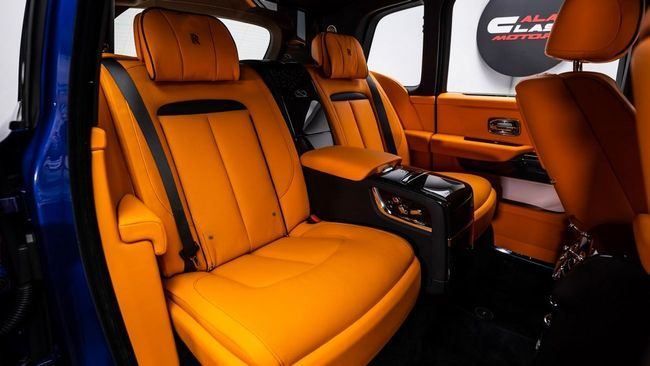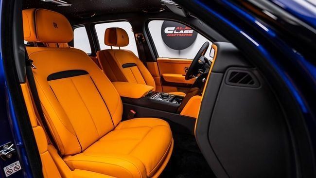 Selling Price: AED 1,690,000 Starting from: AED 25,631 per month Payable in 5 Years with 20% Down Payment Bank terms & conditions may apply 2024 Rolls-Royce Cullinan Black Badge Mileage: 2,750 Km GCC Specs Under Dealer Warranty and Service Contract Engine Size: 6.8L V12 Horsepower: 591 HP Exterior Color: Salamanca Blue Interior Color: Mandarin