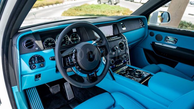 Introducing the 2024 Rolls-Royce Cullinan, a masterfully crafted SUV that redefines luxury and performance. With its elegant white exterior, this vehicle captures attention and exudes a commanding presence on the road. The Cullinan stands out in the prestigious lineup of Rolls-Royce, a brand known for its unwavering commitment to craftsmanship and opulence since its inception in 1904. This particular model, the I Facelift, features a robust 600 horsepower gasoline engine paired with a seamless 6.7-liter automatic transmission, delivering an exhilarating driving experience
