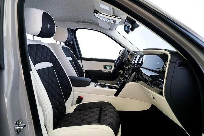 This used Rolls-Royce Cullinan Black Badge, a 2025 Gen I Facelift model, is a five-door luxury SUV finished in Grey. It pairs all-wheel drive with an automatic transmission and is powered by a petrol 6.7-liter V12 delivering about 600 horsepower. The GCC-spec version is tailored to regional conditions, combining effortless power with the signature refinement Rolls-Royce buyers expect. It has one owner and mileage reads 60. On the Black Badge variant, you get a more confident performance character without compromising the serene, cushioned ride Rolls-Royce is known for. The