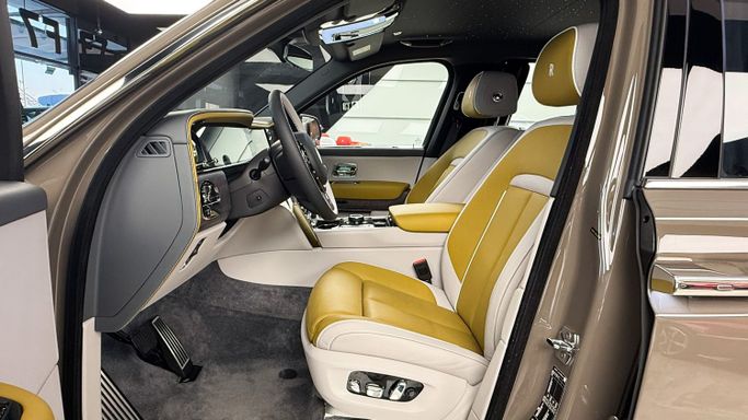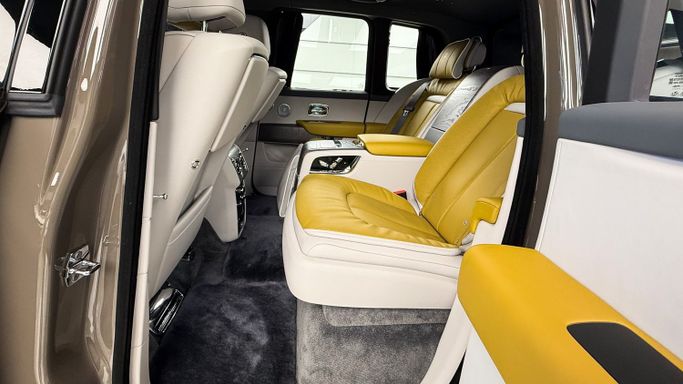 Rolls-Royce Cullinan Silver Badge – 2025 - Model Year: 2025 - Color : Emperador Truffle - Interior Color : A two-tone combination Chartreuse & Cashmere Grey - Engine: 6.7L V12 Twin-Turbo – 563 HP of smooth, commanding power - Drive: All-wheel drive - Performance: Effortless acceleration and supreme ride comfort - Luxury Features: Starlight headliner, rear executive lounge seating, bespoke materials, advanced infotainment system - Edition Silver Badge – sportier handling with a bold, dynamic edge The 2025 Cullinan Silver Badge — where ultimate craftsmanship meets V12 perfe