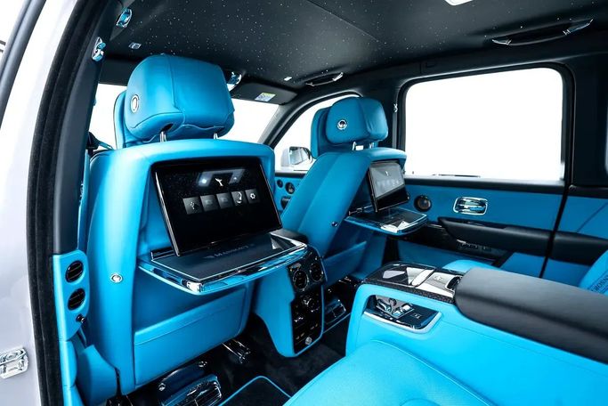 *EXTERIOR COLOUR TEMPEST GREY *INTERIOR COLOR TURCHESE BLUE *24INCH MANSORY FORGED ALLOY WHEELS IN BLACK *CARBON FIBER FRONT BUMPER WITH LED *CARBON FIBER FRONT LIP *CARBON FIBER REAR BUMPER WITH DIFFUSER *CARBON FIBER SIDE SKIRTS *CARBON FIBER WHEEL ARCHES *CARBON FIBER BONET *CARBON FIBER FENDERS *CARBON FIBER INTERIOR ELEMENTS *CARBON FIBER PADDLES *CARBON FIBER ILLUMINATED TRADEPLATE *CARBON FIBER STEERING WHEEL *BESPOKE PREMIUM AUDIO SYSTEM *REAR THEATRE CONFIGURATION *ILLUMINATED FASCIA *ILLUMINATED GRILL *MANSORY MONOGRAM TO ALL HEADREST *EXTENDED LEATHER HEAD