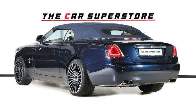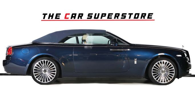 Rolls Royce MODEL : Dawn M/Y : 2016 MILEAGE : 39,540 KM EXTERIOR COLOR : Arabian Blue INTERIOR COLOR : Tan Fully Serviced SPECS : European OPTIONS : 3 Buttons – Head-up display Lane keeping warning Lane change assist 2 Tone steering wheel tan/Blue Bespoke premium audio system with chrome speakers 360 Degree view cameras Single coachline Wood trim Adaptive cruise control 22 Inch Mansory Rims machine polished Dark Blue Convertible roof ENGINE : 6.6L Twin Turbo CYLINDERS : V12 HP : 563 hp 0-100 km/h : 4.9 sec.