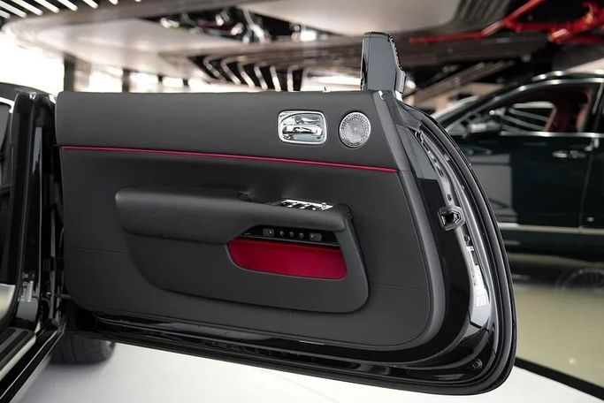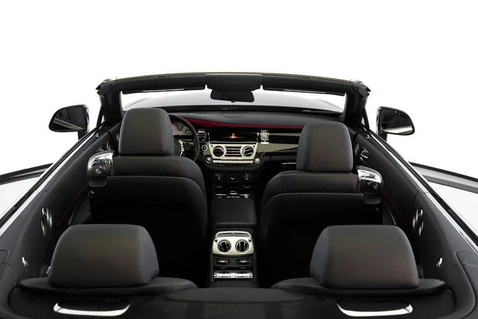 2018 Rolls-Royce Dawn Black Badge Cabriolet, finished in a deep Black. This example is powered by a 6.6-liter twin-turbo V12 producing 601 horsepower, paired with an automatic transmission and rear-wheel drive. The Black Badge modification sharpens throttle response and adds a more dynamic character while preserving the renowned quiet, refined ride that defines the Dawn. It has a single owner and 29,000 miles on the odometer, a combination that often indicates careful use and consistent upkeep. The exterior black finish presents a sleek, understated silhouette, while the o