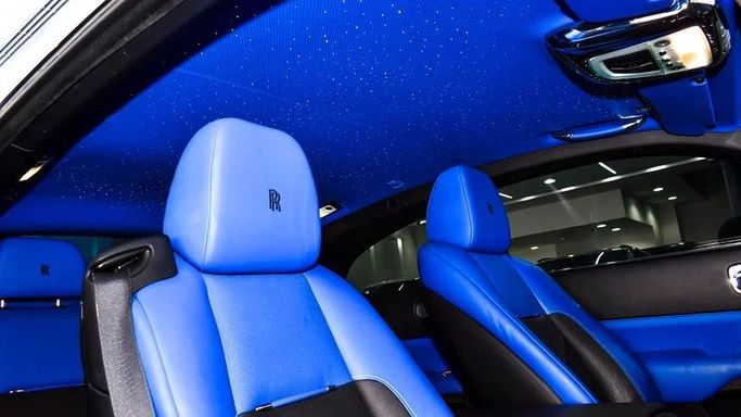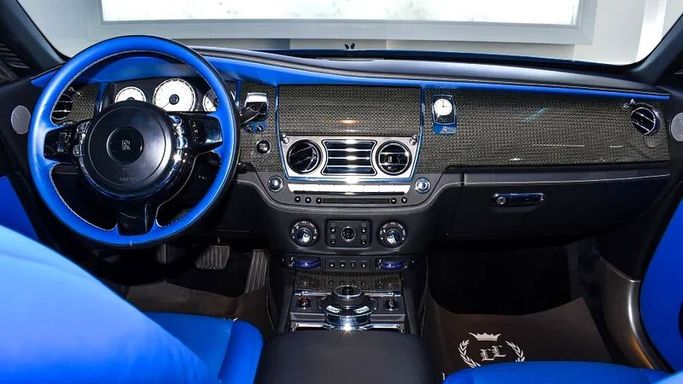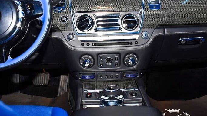 ROLLS-ROYCE WRAITH BLACK BADGE GCC FULL PPF 2017. IN EXCELLENT CONDITION Black with blue exterior and interior. Full service done from AGMC. This car features automatic transmission, 12 cylinders, 21" wheels, and a blue interior. 25,000 km, GCC specs. Features & Specs List: - Keyless Entry / Start - Soft Close Doors - Pedestrian Alert - Lane Warning - PDC Front and Rear Cameras - Electric Leather Memory Seats - Pedestrian Alert Active Assist - Auto LED Headlights - Exterior/Interior Lights - Auto Climate Control 4 Zones - Seat Heating/Seat Cooling
