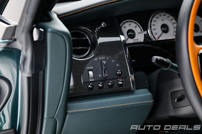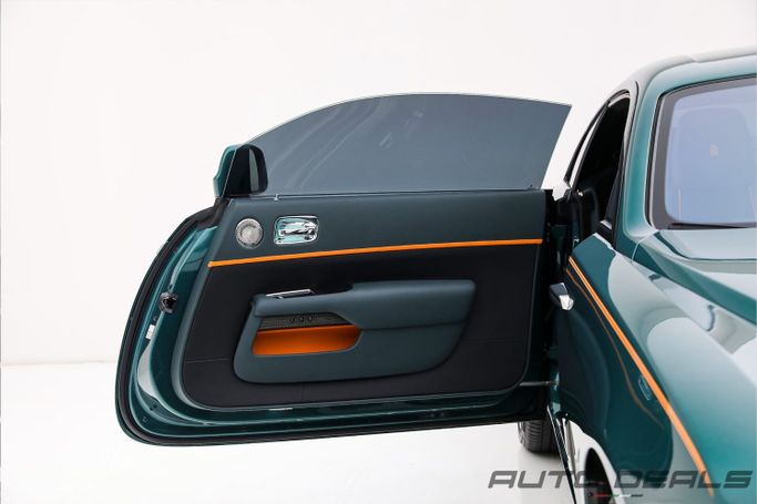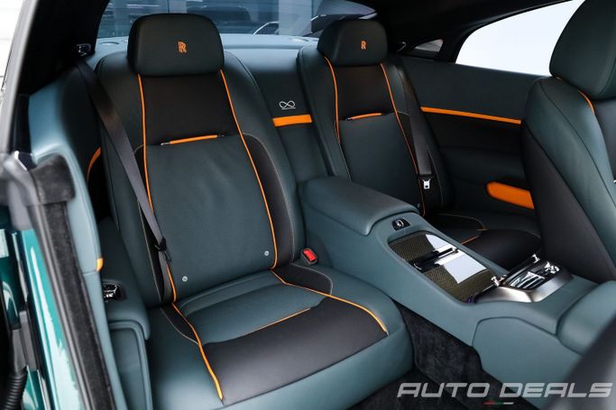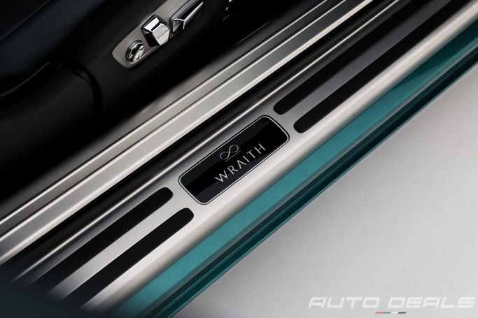 This 2023 Rolls-Royce Wraith in Teal is a two-door coupe that pairs Black Badge tuning with notable performance: a 6.6-liter V12 delivering 632 horsepower, mounted to rear-wheel drive and an automatic transmission for a composed yet responsive driving character. Built to GCC specifications, it blends effortless refinement with a more immediate, sportier edge while maintaining the quiet, meticulously crafted cabin Rolls-Royce buyers expect. With a single owner and just 8,596 kilometers on the clock, it presents a well-preserved condition and low overall usage. The Black Badg