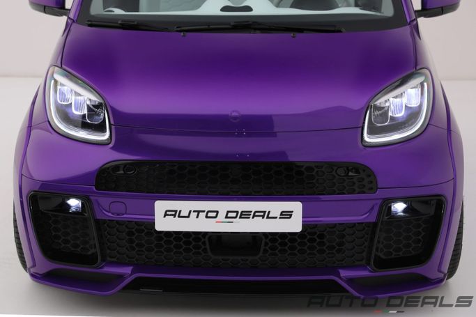 2023 Smart Brabus Ultimate E EQ Fortwo Cabriolet 01 of 50 is a compact electric two-seater with automatic transmission, finished in a bold purple that stands out in urban streets. It blends open-top driving with efficient city performance, offering a nimble, quiet ride perfect for slipping through tight traffic and navigating tight parking spots. The 60 kW electric motor, about 81 hp, sends power to the rear wheels through an effortless automatic gearbox, delivering smooth, responsive acceleration for everyday city trips. With a single owner and European specifications, it