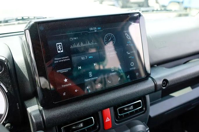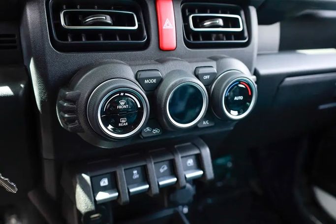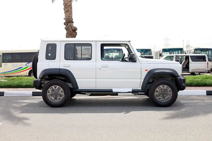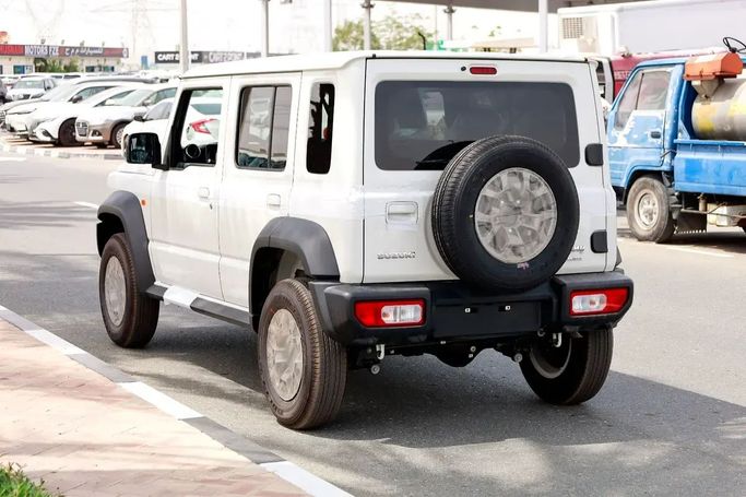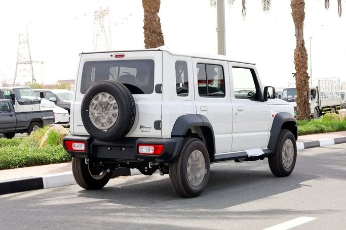 The new generation Suzuki Jimny IV is a white five-door SUV that combines character and practicality with modern comfort. Under the hood, it has a 1.5-liter gasoline engine with a capacity of 105 hp, paired with a manual transmission, which ensures smooth movement around the city and steady acceleration on drier roads. The all-wheel drive (AWD) expands its capabilities on a variety of surfaces, and compact dimensions enhance maneuverability in urban traffic and facilitate parking. The interior design retains the recognizable Jimny style, offering comfortable ergonomics for
