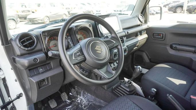 Brand New Suzuki Jimny – 1.5L Petrol – White / Black – 2026 (N-JIMY-5D-1.5-26) 5-Door 4WD SUV designed for rugged adventures with classic style and reliable performance. Engine & Performance Engine: 1.5L, 4-Cylinder, 16-Valve Multi-Point Injection Power: 100 HP @ 6000 rpm Torque: 130 Nm @ 4000 rpm Transmission: Manual Drive Type: 4WD Fuel Type: Petrol (Euro 5) Fuel Tank Capacity: 40L Exterior Features Color: White Wheels: 15” Alloy Wheels Lights: Halogen Multi-Reflector Headlamps, Front & Rear Fog Lamps, High-Mount Stop Lamp (HMSL) Keyless Entry: Yes Doors: 5 Doors Rear Vie