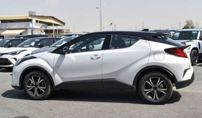New 2022 Toyota C-HR, Gen I Facelift, in white, is a five-door compact SUV designed for everyday practicality and a confident road presence. It uses a 1.2-liter petrol engine producing 116 horsepower, paired with a smooth CVT automatic for steady acceleration and efficiency. All-wheel drive provides confident traction in varying conditions, while the GCC-spec build aligns with regional standards. The exterior design preserves Toyota’s distinctive, crisp lines in a compact footprint, and the interior focuses on ergonomic controls and comfortable everyday use. With a balanced