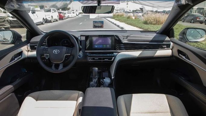 2025 Toyota Camry 2.5 E+ FWD Hybrid is a sophisticated sedan that combines efficiency, performance, and modern technology. GCC Specifications 2.5L hybrid engine paired with a front-wheel-drive system, delivering up to 232 net combined horsepower. The hybrid powertrain ensures impressive fuel efficiency, with an estimated combined MPG of up to 51. The Camry boasts a sleek exterior design with LED headlights and taillights, a chiseled build, and a low, wide stance. Inside, it offers a spacious and comfortable cabin with premium materials, a 12.3-inch multimedia display, and a