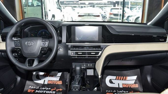 New 2025 Toyota Camry E-PLUS. HEV for sale in Dubai. Available from Najem Motors FZE. Automatic transmission, 4 cylinder engine, 16″ wheels and beige interior. Never driven, GCC specs.