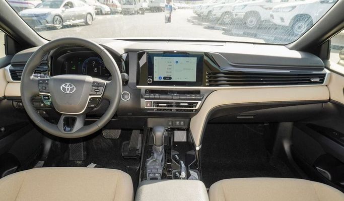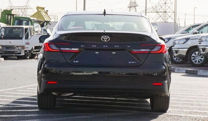 New Toyota Camry LE HEV 2.5L Hybrid for sale from Najem Motors FZE in Dubai. Black 2025 model. The car has automatic gearbox, 4 cylinder engine, 18″ wheels and beige interior. GCC specs.