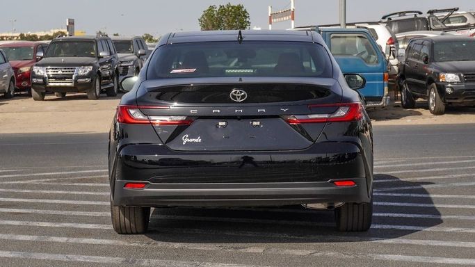 New Toyota Camry GRANDE 2.5L for sale from Najem Motors FZE in Dubai. Black 2025 model. The car has automatic gearbox, 4 cylinder engine, 18″ wheels and tan interior. GCC specs.
