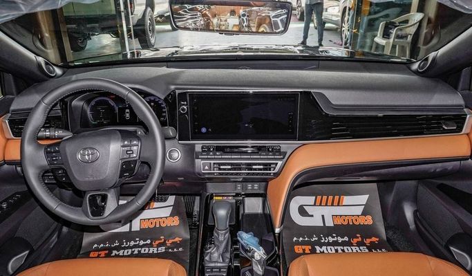 New 2025 Toyota Camry 2.5 L Hybrid for sale in Dubai. Available from Najem Motors FZE. Automatic transmission, 4 cylinder engine, 17″ wheels and tan interior. Never driven, GCC specs.