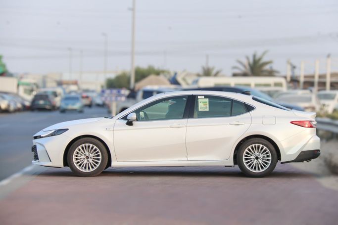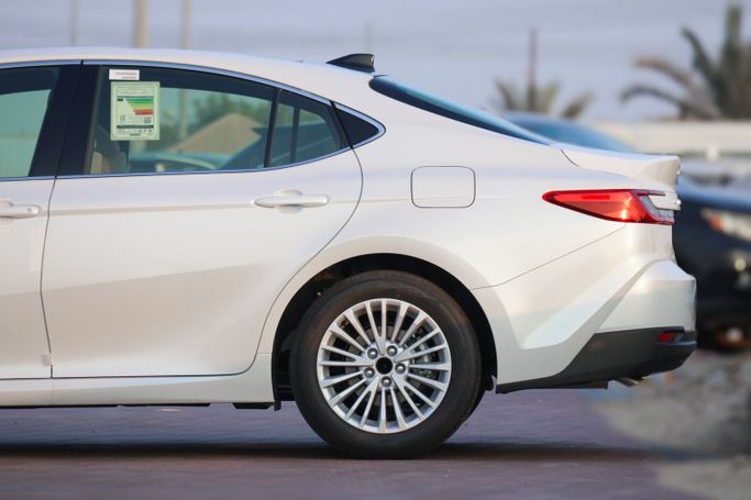 The all new Toyota Camry Hybrid LE 2025 at best export price in UAE. Read more ENGINE & MECHANICAL FEATURES – 2.5L 4-Cylinder 16-Valve DOHC Engine with Electric Motor and ECO/Normal/Sport Driving Modes – Total System Power= 226HP – Engine Torque = 221 NM @ 5,200 – 3,600 RPM – ECVT Transmission with Sequential Shift Mode – 50L Fuel Tank Capacity DIMENSIONS – Length = 4,920 mm – Width = 1,840 mm – Height = 1,445 mm – Wheelbase = 2,825 mm – Curb Weight = 1,595 kg – Cargo Space = 493L EXTERIOR FEATURES – 17 inch Alloy Wheels with Multi-Spoke Design (55/215R17) – “Hammer Head