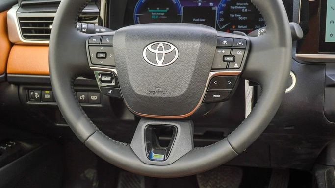 Brand new Toyota Camry Lumiere HEV 2.5L Hybrid for sale in Dubai. White 2025 model, available at GT Motors. This car has automatic transmission, 4 cylinder engine, 18″ wheels and tan interior.