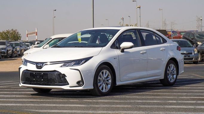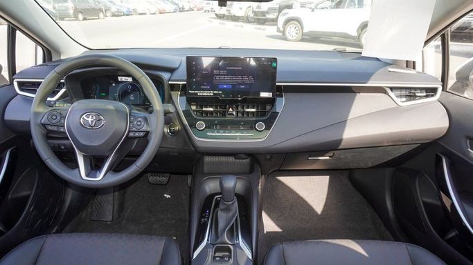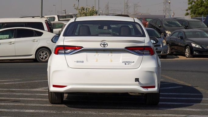 New Toyota Corolla HEV for sale from Najem Motors FZE in Dubai. White 2024 model. The car has automatic gearbox, 4 cylinder engine, 16″ wheels and black interior. Chinese specs.