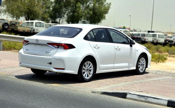 Introducing the 2025 Toyota Corolla XII (E210) Facelift sedan in white. This new-generation Corolla pairs a 1.8-liter hybrid drive with all-wheel drive and a CVT, delivering confident performance and smooth power delivery. With 140 horsepower, the Sporty base modification emphasizes a responsive feel while preserving efficiency, and the GCC-spec setup is tuned for regional conditions. Inside, the cabin prioritizes comfort and tech integration, offering a refined ride for daily use and longer journeys alike, while the distinctive facelift styling gives the sedan a modern, cl