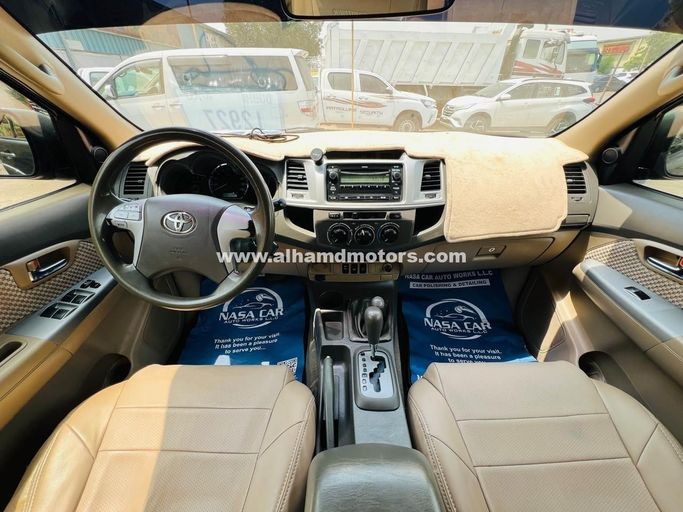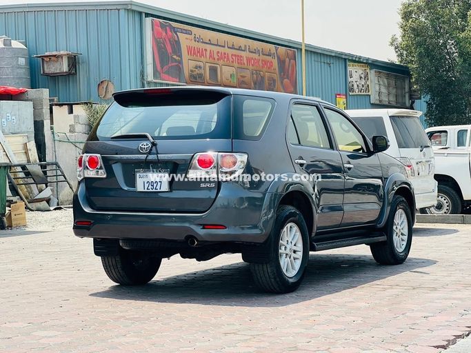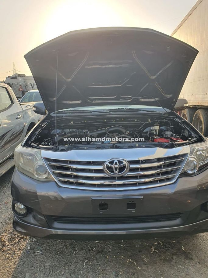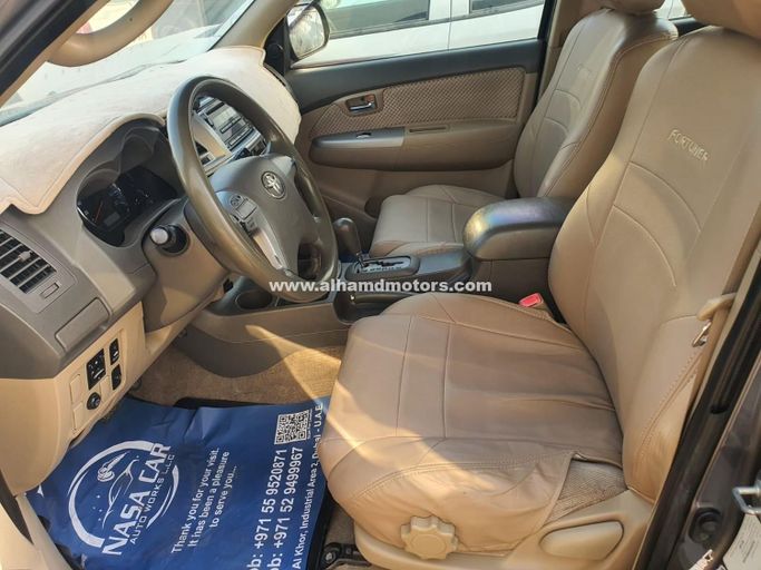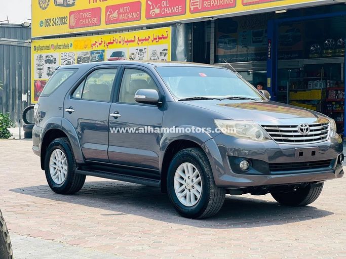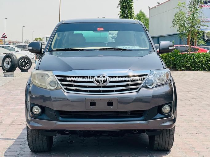 Toyota Fortuner SR5 ,Year Model 2012 Left Hand Drive ,Body Color Grey ,Interior Color Beige Mileage = 41,400 km ,Automatic Transmission ,CD Player ,F.M Radio Alloy Wheels ,Fabric Seats With Cover ,7 Seater ,Dual AC Used Tiers ,G.C.C Specs