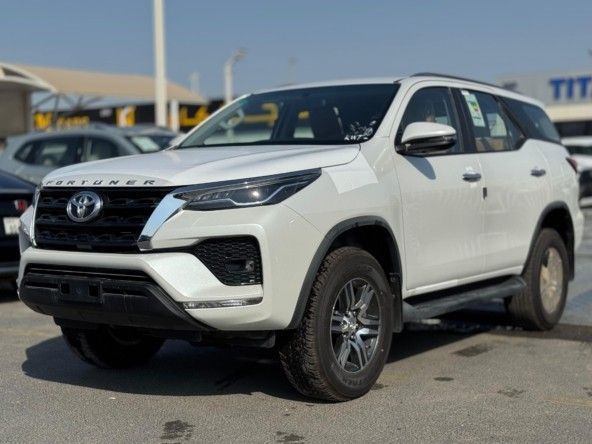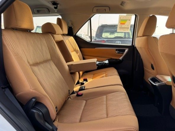 Toyota Fortuner 2.4L Diesel GCC Specifications 2024 Model White Exterior with Caramel Leather Interior Push Start Button Digital Air Conditioning Seven-Seater