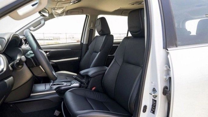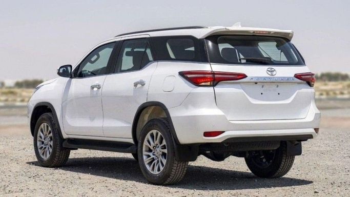 New 2024 Toyota Fortuner II Facelift in white presents a capable five-door SUV with all-wheel drive and automatic transmission. Its 2.8-liter diesel engine develops 200 hp, delivering steady acceleration and confident highway cruising while remaining practical for everyday duties and tougher terrain. The II Facelift brings refined styling cues, a more modern cockpit, and a thoughtful balance of passenger space and cargo flexibility. Built to GCC specs, it adapts to regional climate and road needs, combining durability with a quiet, comfortable interior. Overall, this Fortun