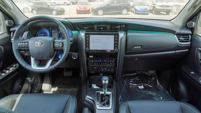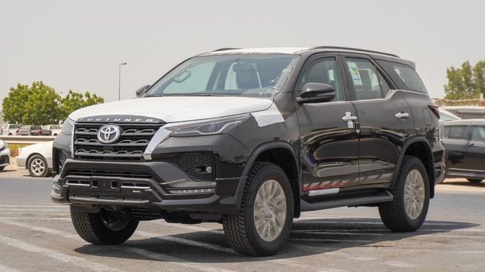 New Toyota Fortuner SR5 4.0L V6 for sale from Najem Motors FZE in Dubai. Black 2025 model. The car has automatic gearbox, 6 cylinder engine, 17″ wheels and black interior. GCC specs.