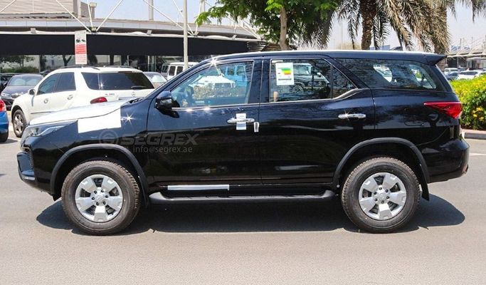 2025 Model Toyota Fortuner, 2.7L Petrol 4WD 6A/T Export outside GCC countries only. ---------------------------------------------------------------------- DESCRIPTION & FEATURES ✅ 6-Speed A/T ✅ Auto Disconnect Differential ✅ ABS + VSC + HAC + TSC + ESS ✅ Over fender ✅ Rear Spoiler ✅ Side Step ✅ Auto A/C ✅ 8" Display, 6-Speakers, AM/FM/BT/USB ✅ Cruise Control ✅ Keyless Entry ✅ Power Window +Window Defogger ✅ LED Head Lamp ✅ Power Outer Mirrors ------------------------------------------------------------------ We (Segrex Auto), established in 1997, have over 28 years of exper