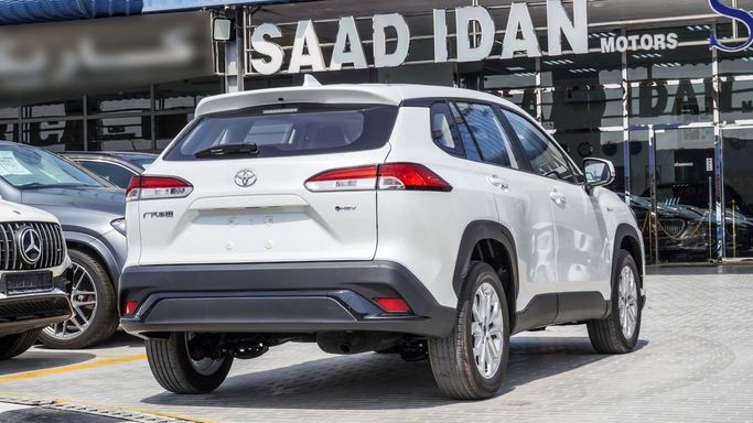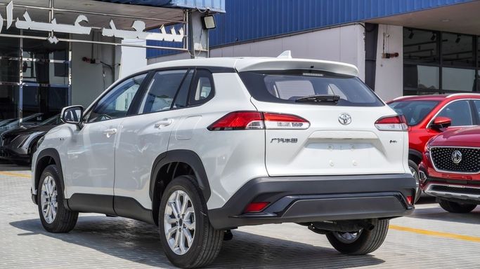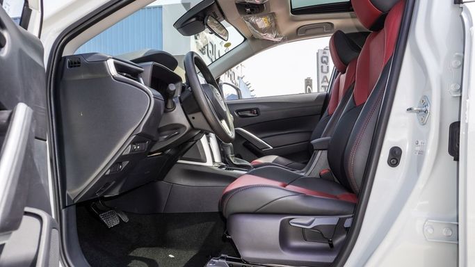 New Toyota Frontlander. White 2025 model. The car has automatic gearbox, 4 cylinder engine, 18″ wheels and red interior. Chinese specs.