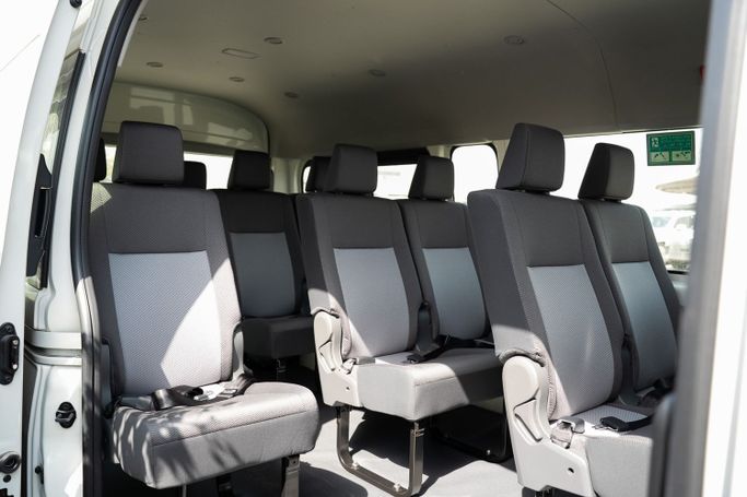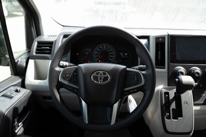Toyota Hiace 2026 – 3.5L Petrol | Automatic | GCC Specs | Export Ready General Information Model Year: 2026 Condition: Brand New (0 KM) Region: GCC Specs Steering Side: Left Hand Drive Seller Type: Dealer Export: Available for Export Engine & Performance Engine Capacity: 3.5L Petrol Cylinders: 4 Horsepower: 200 – 299 HP Transmission: Automatic Exterior Body Type: Van Exterior Color: White Doors: 4 Doors Strong and durable body for commercial and passenger use Interior Seating Capacity: 15 Seater Interior Color: Black Spacious and comfortable cabin Desi
