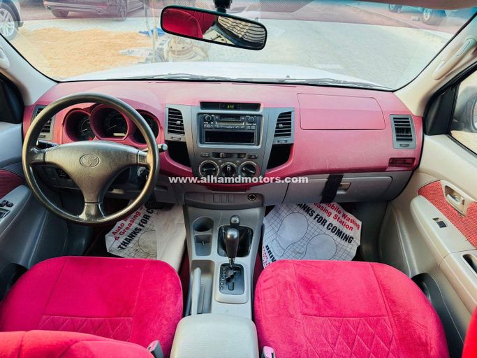 Toyota Hilux Pickup ,Year Model 2008 ,VVTI Engine Left Hand Drive ,Petrol Engine ,2.7 Liter ,Mileage = 66,500 KM White Color ,Automatic Transmission ,Key Start ,4X4 ,Fabric Seats Power Windows ,FM Radio ,Alloy Wheels ,Used Tiers ,GCC SPECS