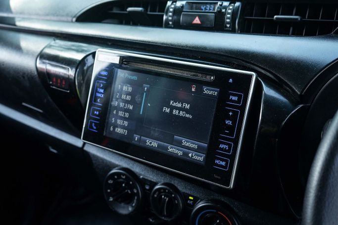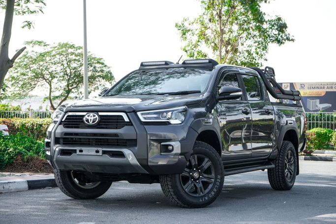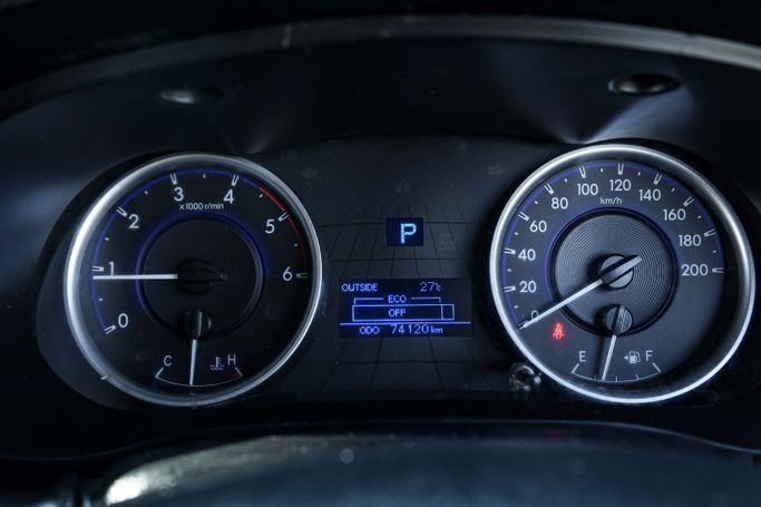 This 2018 Toyota Hilux VIII double-cab pickup is finished in grey and powered by a 2.8-liter diesel delivering 177 horsepower, paired with an automatic transmission. With all-wheel drive, it handles varied road conditions with confidence while remaining practical for daily use. It has had a single owner and covers about 74,300 kilometers, a sign of careful use over time. The eight-generation Hilux combines a proven, sturdy drivetrain with a comfortable cabin that suits both work tasks and family trips, offering straightforward controls and an accommodating feel. A robust lo